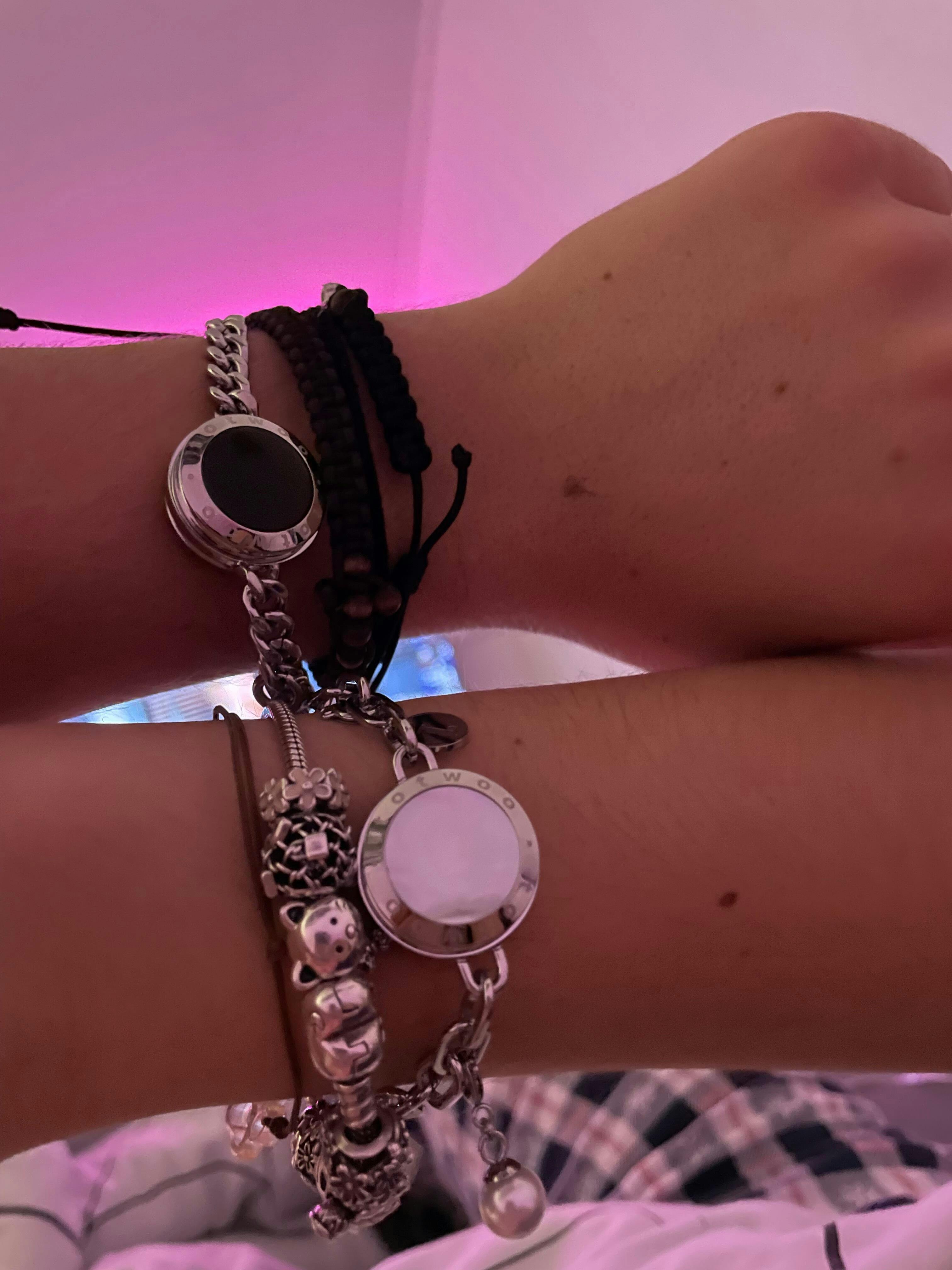 Mein Freund und ich wohnen eine Stunde voneinander entfernt. Wir tragen unsere Armbänder ständig, auch wenn wir nicht zusammen sind! Immer wenn mein Armband leuchtet, zaubert es mir ein breites Lächeln ins Gesicht! Wir lieben auch die anpassbaren Funktionen der App. Mit den verschiedenen Sprüchen, die man ändern kann, und den verschiedenen Farben, die man auswählen kann, haben wir unsere Armbänder wirklich personalisiert und zu unseren ganz persönlichen Armbändern gemacht: Sie waren einfach einzurichten und haben Spaß gemacht, sie gemeinsam anzupassen. Sie sind eine wunderbare Möglichkeit, sich mit seinem Liebsten verbunden zu fühlen 💓